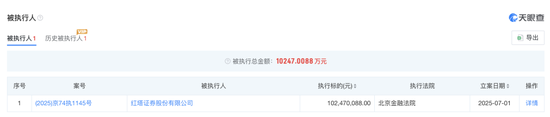 近日,天眼查公开信息显示,红塔证券被北京金融法院采取执行措施,涉及金额1.02亿元。因为该执行案件,红塔证券及法定代表人沈春晖均被限制高消费。